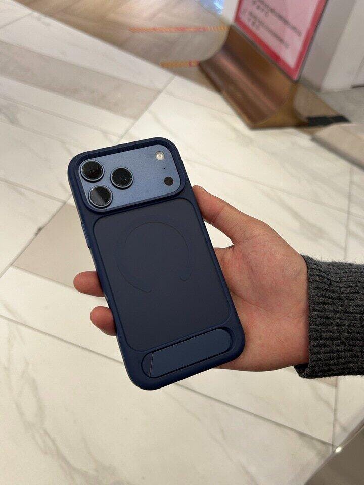 This phone case is really good—it matches the blue iPhone 17 Pro Max perfectly. The feel is fantastic: the center is smooth while the edges are matte, and it’s so nice to touch.