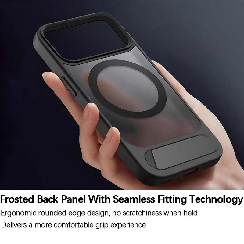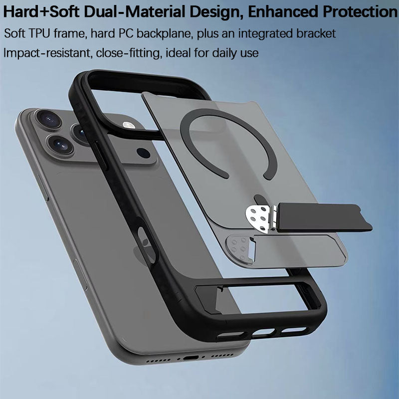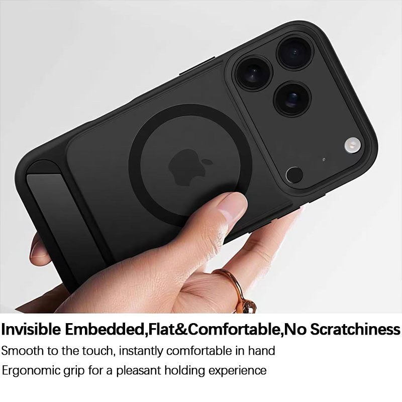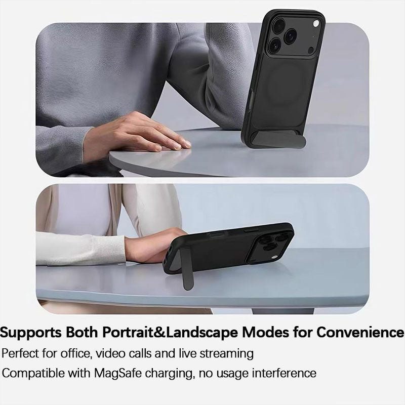 • Engineered to be fully MagSafe® compatible, it seamlessly connects with MagSafe accessories (e.g., chargers, card holders) while the built-in bevel holder stays stable when folded. It also maintains efficient heat dissipation, preventing device overheating during charging or heavy use with the holder deployed.