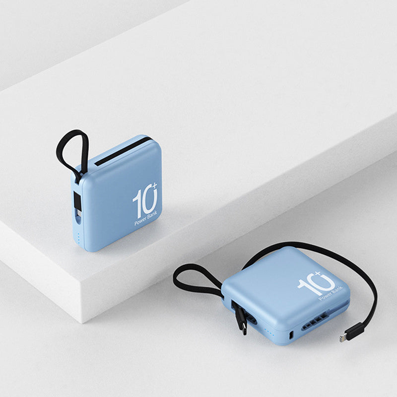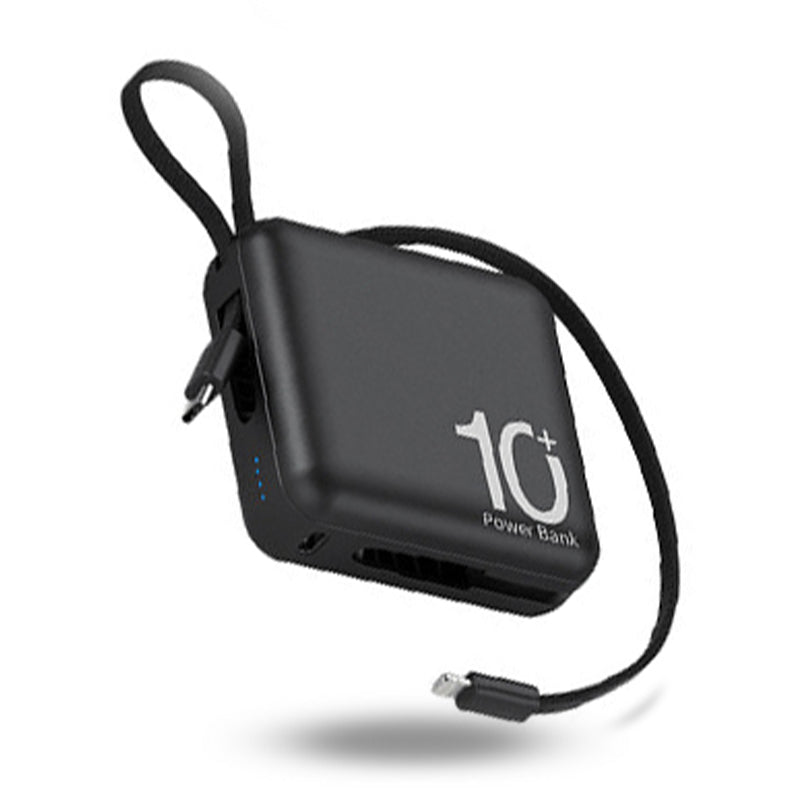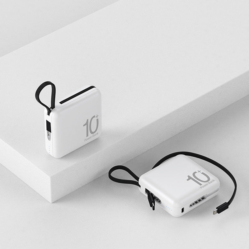 • 10000 mAh mini mobile power bank with Built-in Cables
