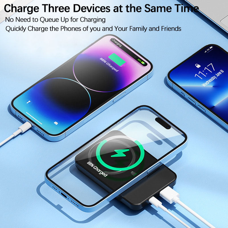 (Type - C bidirectional/USB output) + 15W magnetic wireless charging, compatible with 99% wireless - charging phones.