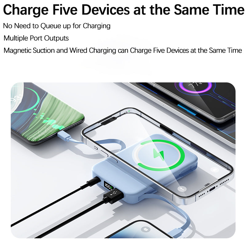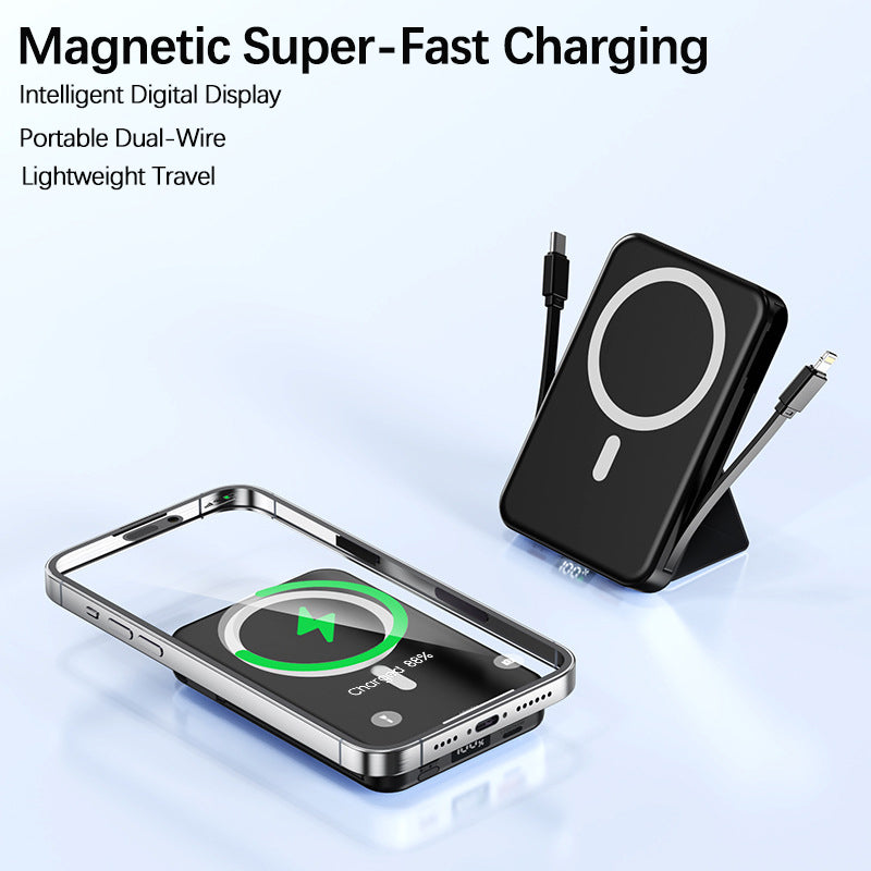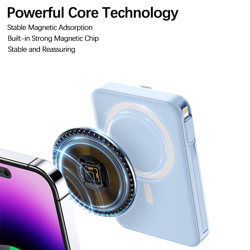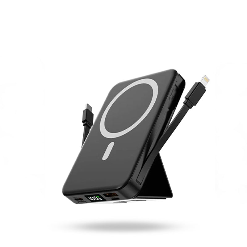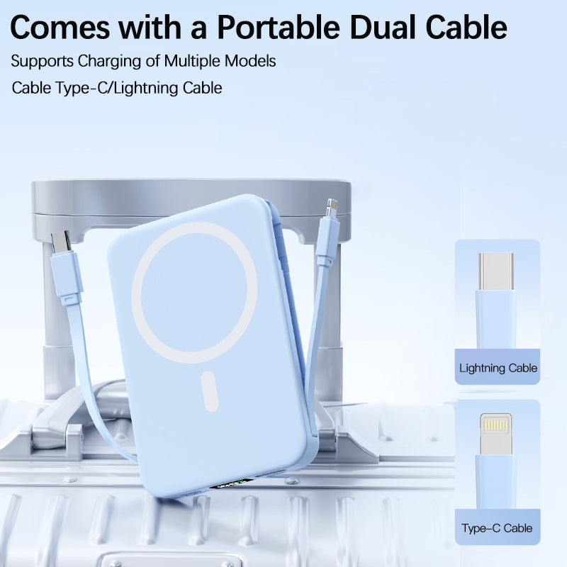 Cleverly integrated Type - C + Lightning cables—no space - hogging, no tangling.