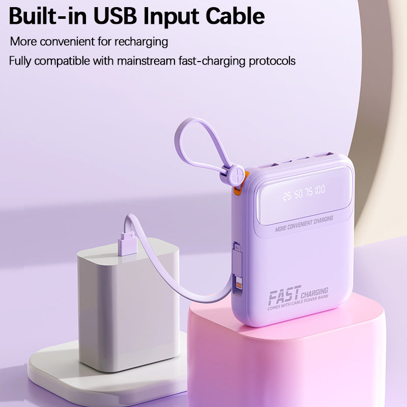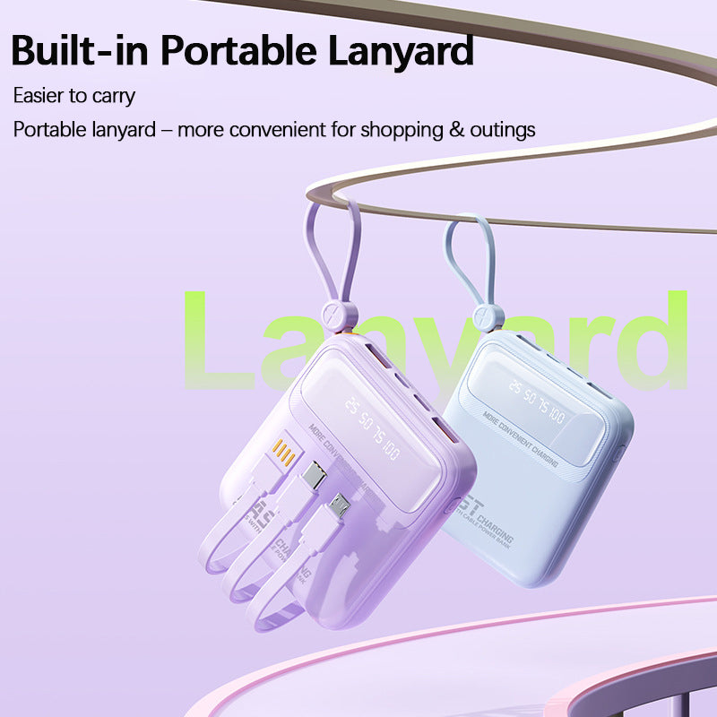 • 20000mAh Mini Portable PowerBank, Built-in four-wire charging cable