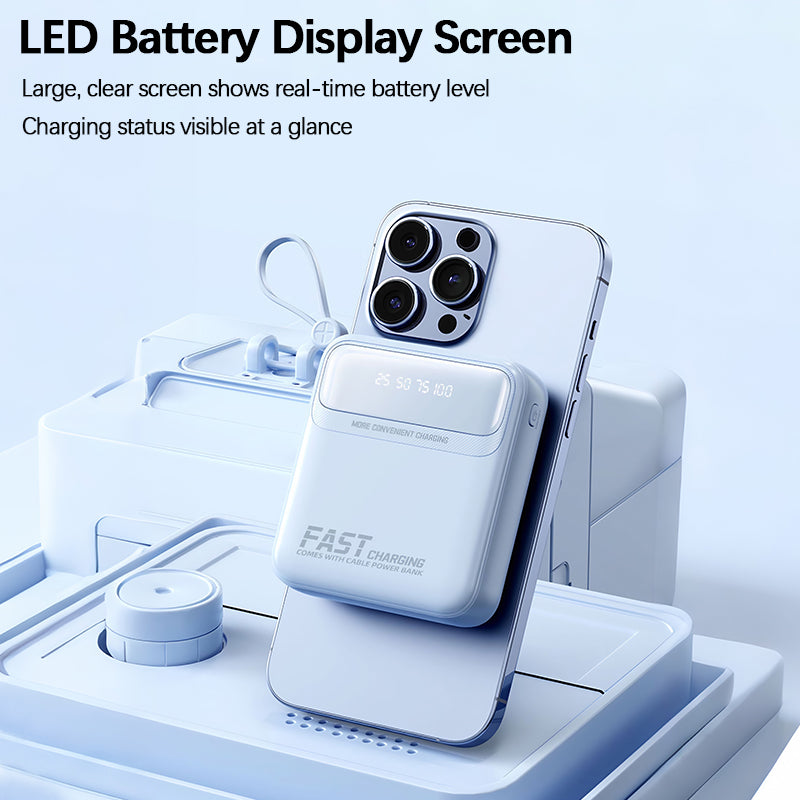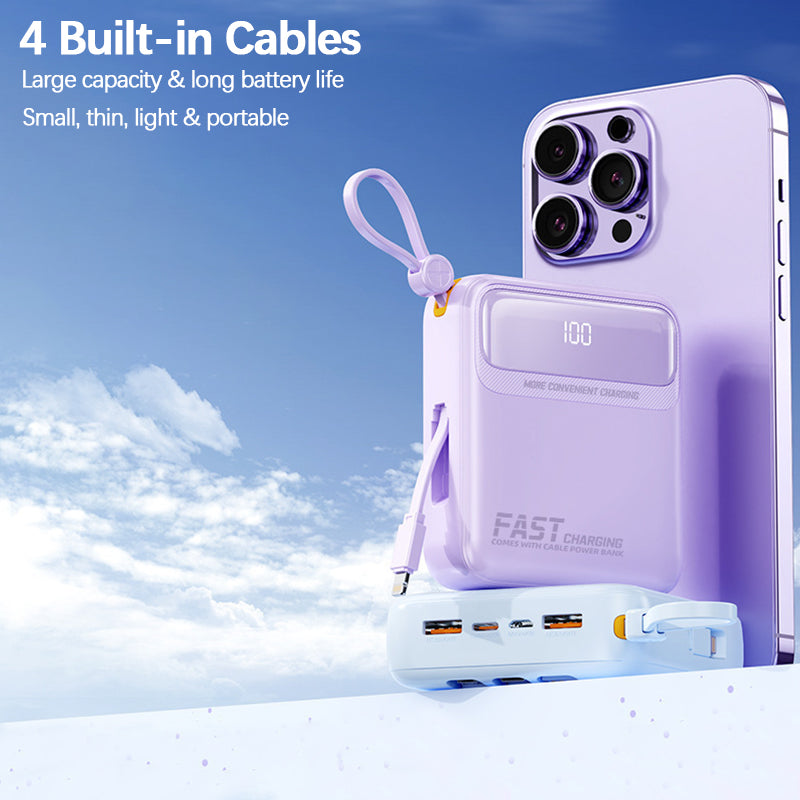 20000mAh Mini Portable Power Bank, with Four Built-in Cables Including Lightning, Type-C and USB, for Simple and Portable Charging
