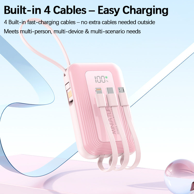 Built - in four fast - charge cables—ditch the hassle of carrying extra cables when out. Meets the charging needs of multiple devices and people across various scenarios.