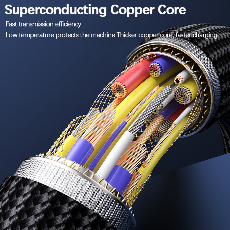 Superconducting copper core has faster transmission efficiency. Low temperature protects the machine better. Thicker copper core makes charging faster.