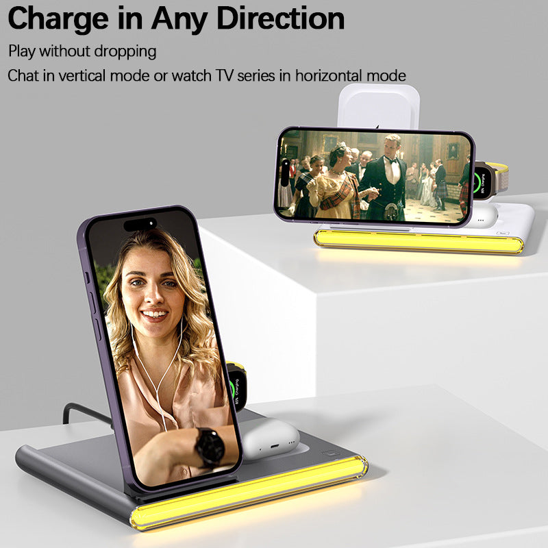 Can realize wireless charging in both horizontal and vertical directions, charge three devices at the same time.
