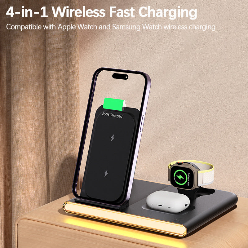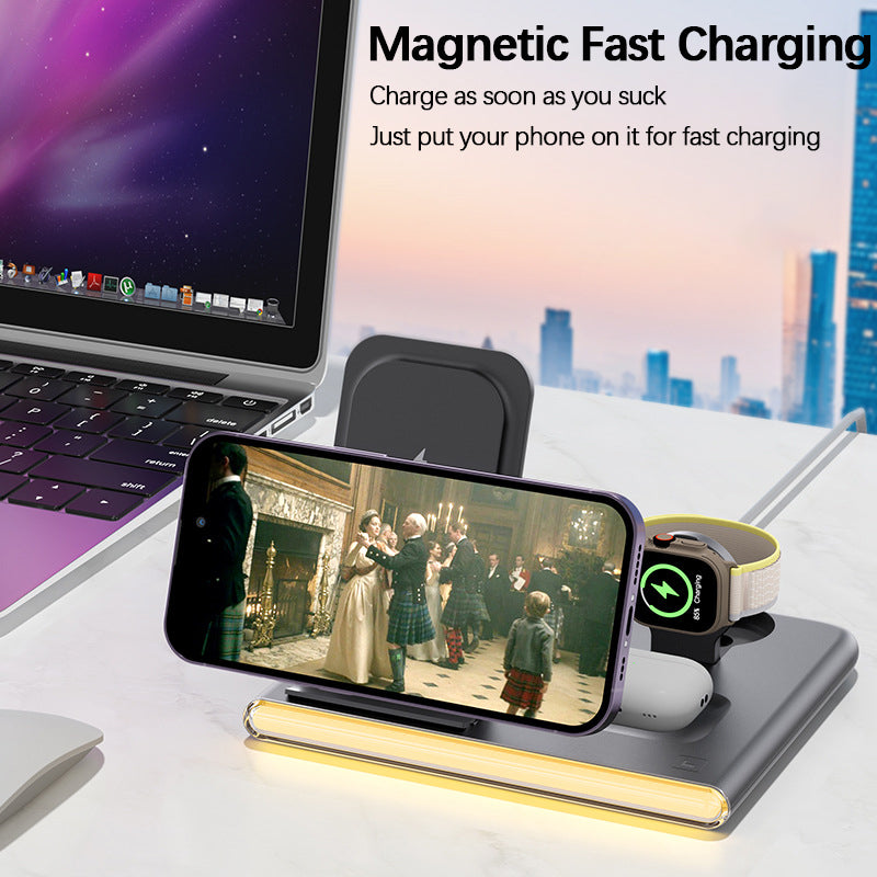 Featuring 15W High-Power Fast Charging, It Comes With a Built-in Adjustable LED Night Light and Also Serves as Both a Charger and a Stand.