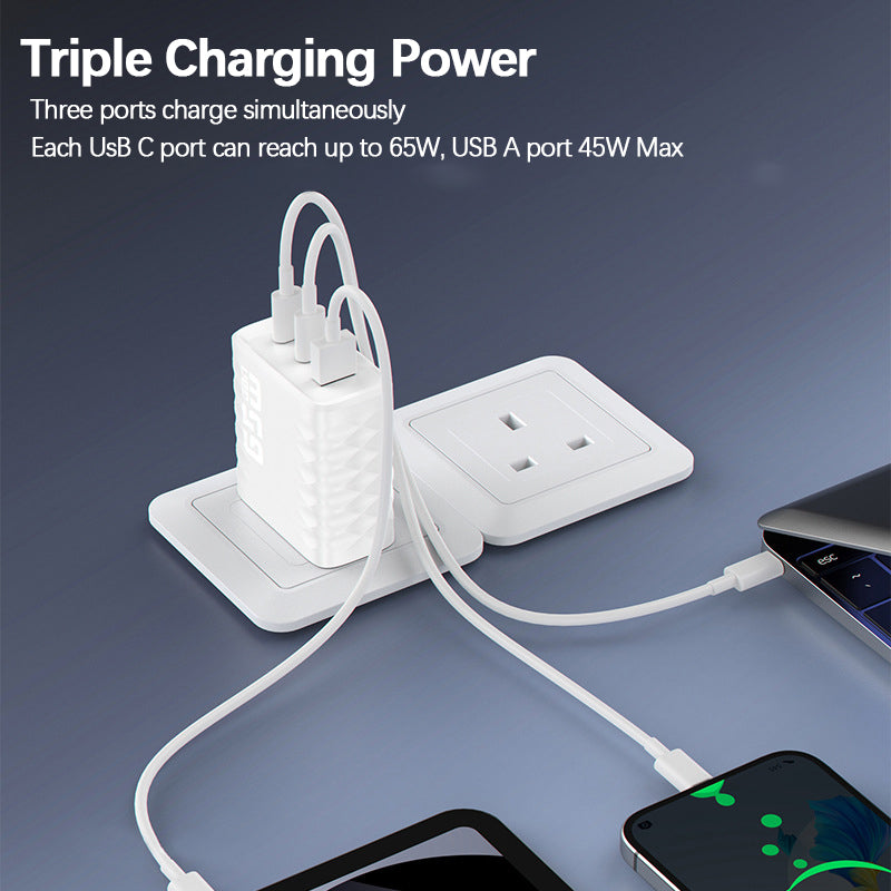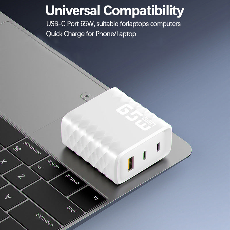 65W GaN Fast Charging Charger -A Safe Charger Equipped With Three Fast-Charging Ports