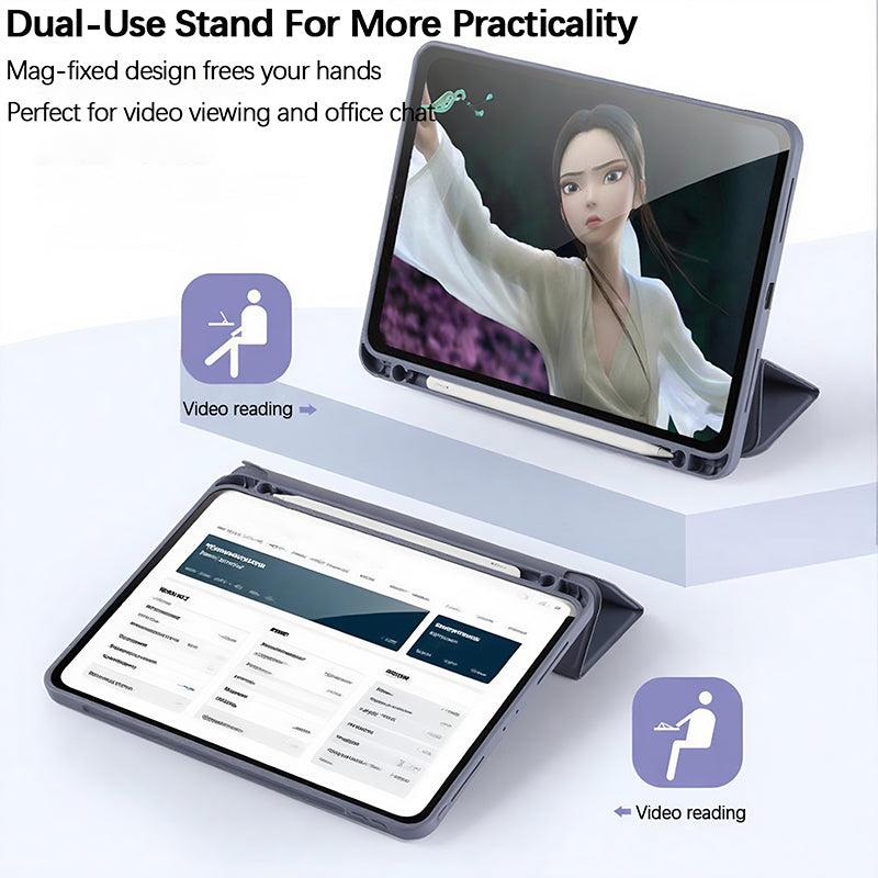 Magnetic fixation frees your hands. This well-designed 2-in-1 stand is ideal for video watching, reading, chatting, and office tasks.