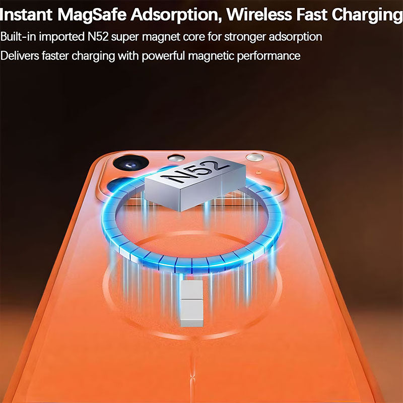 Built-in imported N52 super magnetic core, enabling stronger adsorption and faster wireless charging.
