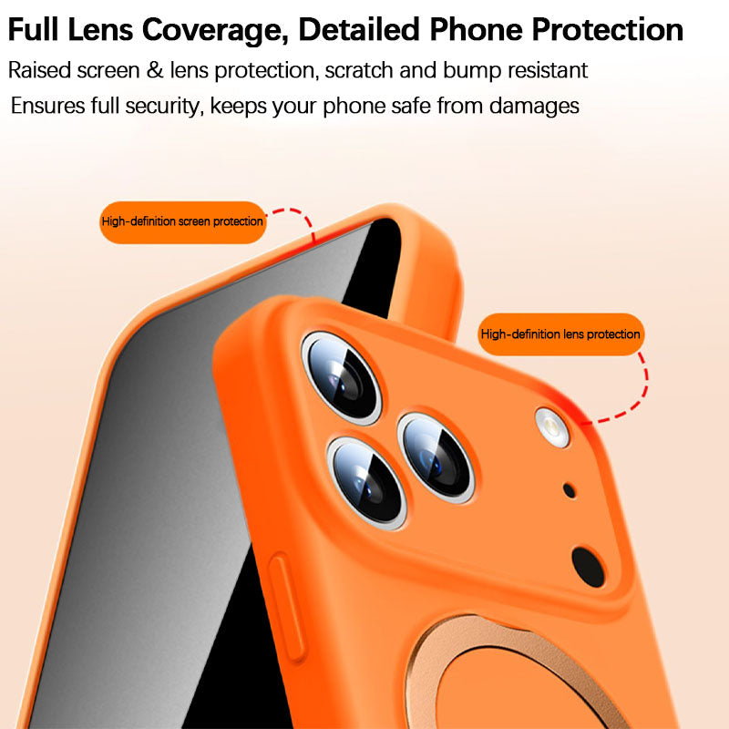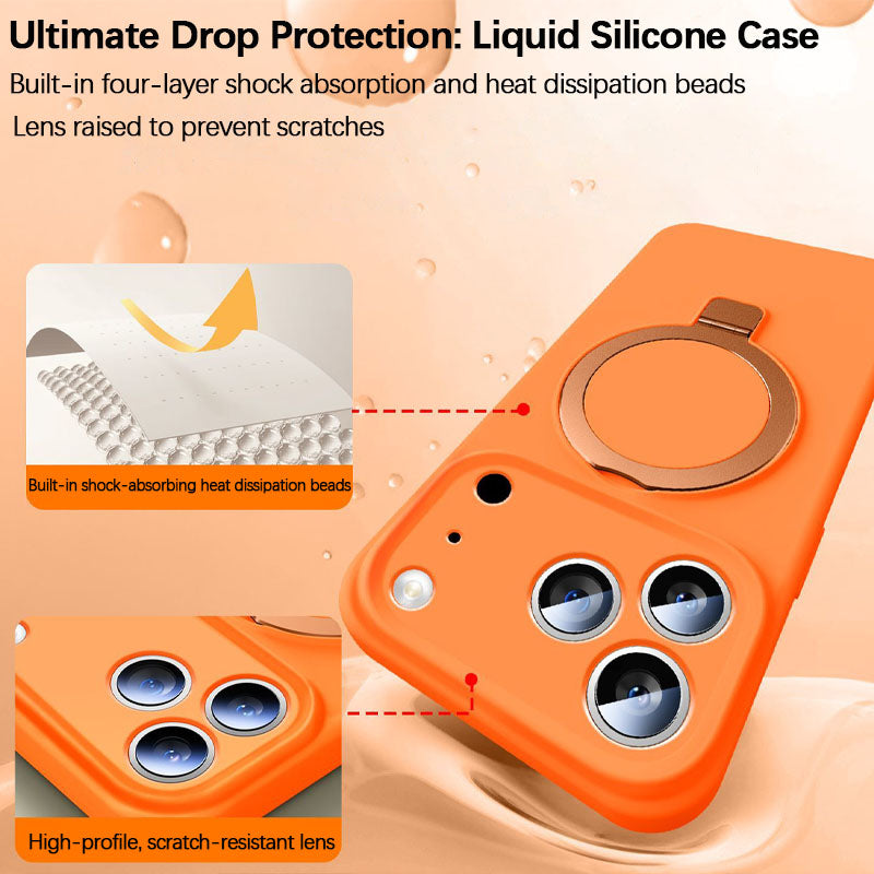 • It has successfully passed the 5-meter drop test and meets 4 times the military-grade drop protection standard. The liquid silicone’s shock-absorbing property and the holder’s reinforced edges jointly absorb impact force, effectively safeguarding the iPhone’s body and the holder structure from collision damage.