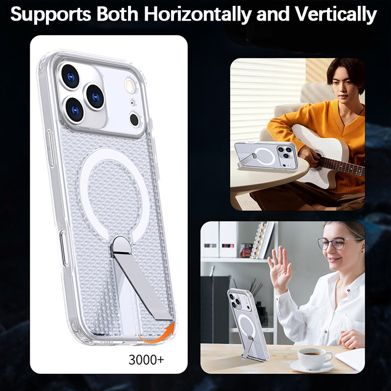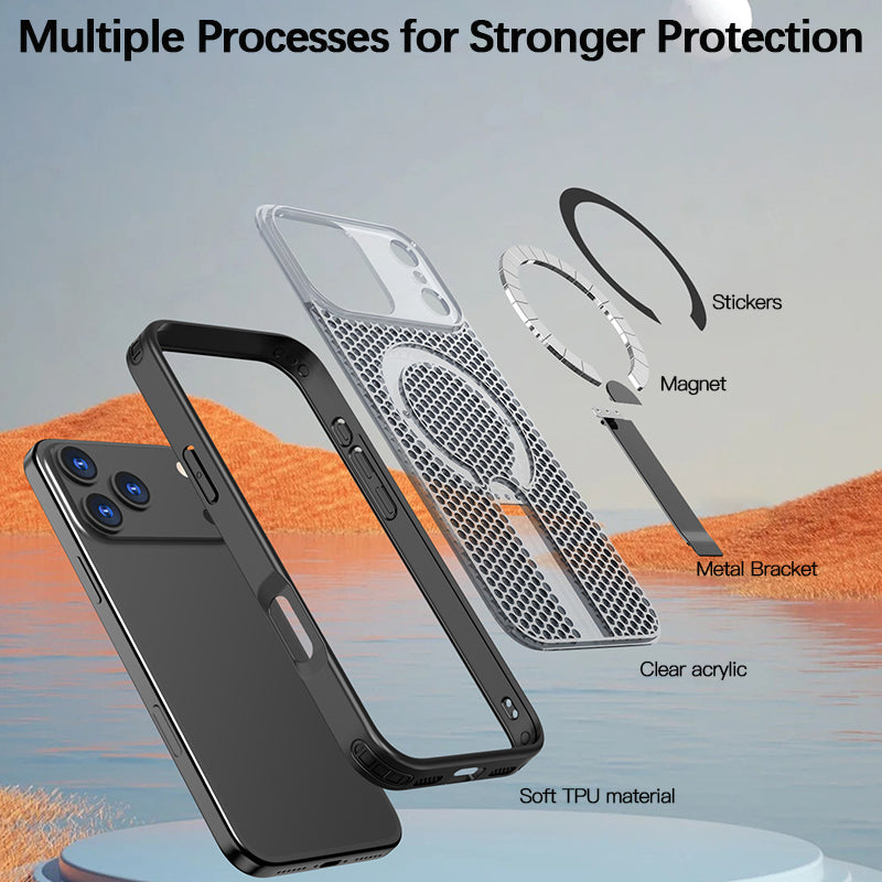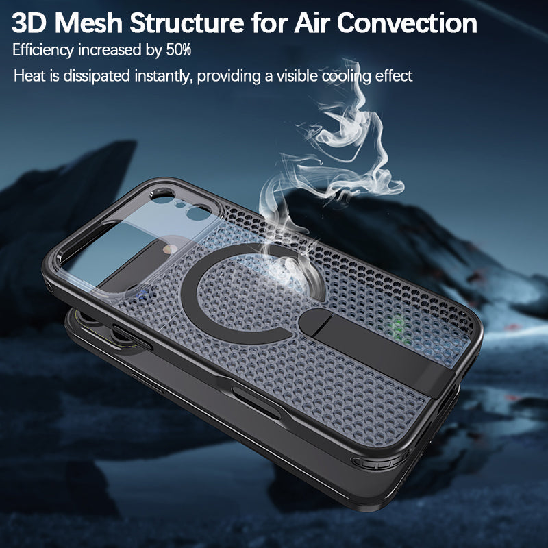 Featuring a 3D stereo mesh design, this case boosts air convection efficiency by 50%. Heat is quickly released in seconds, and the cooling effect is visibly effective.