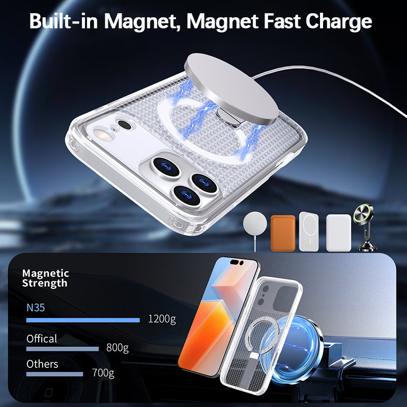 Featuring newly upgraded magnets, this case has 200% stronger magnetic force. With built - in magnets, it enables stable MagSafe fast charging. It also works perfectly with various MagSafe accessories .