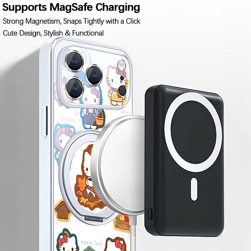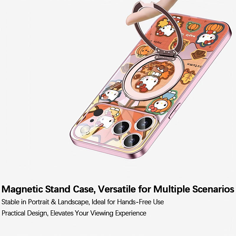 This case supports 360° free rotation. It functions as a stand when pulled open and a magnetic case when closed. It features metal-painted soft edges, a comfortable grip, and lens protection, integrating utility and defense.