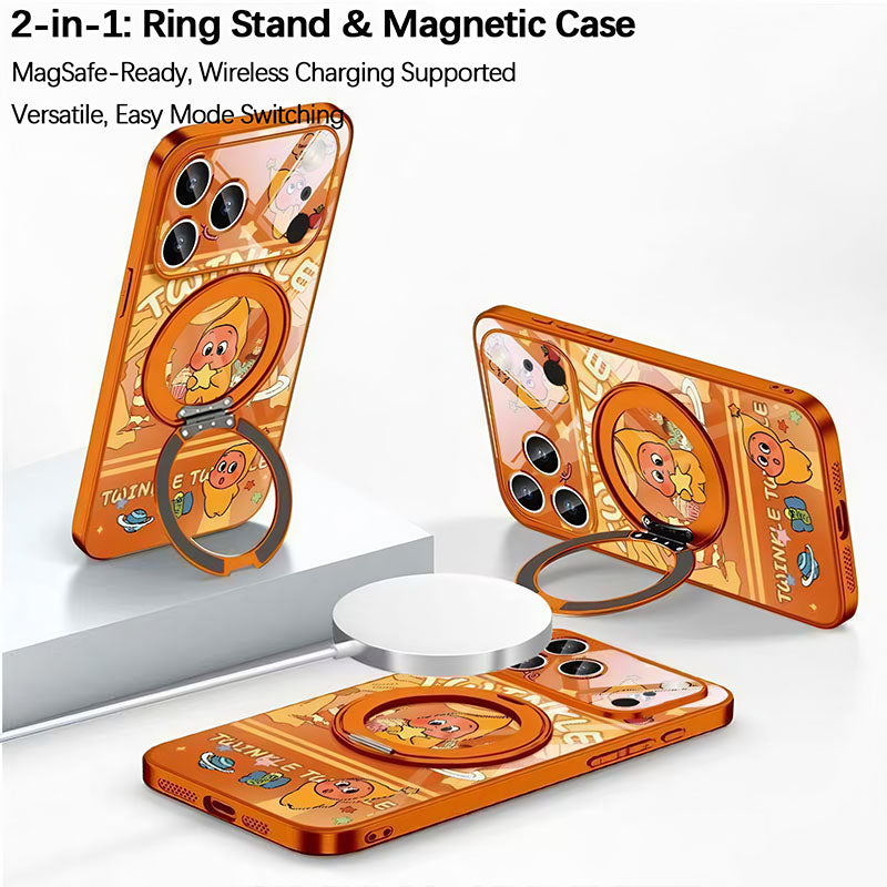 It works as a ring stand when opened and a magnetic case when closed. You can switch freely between the two modes, combining convenience and magnetic functionality.
