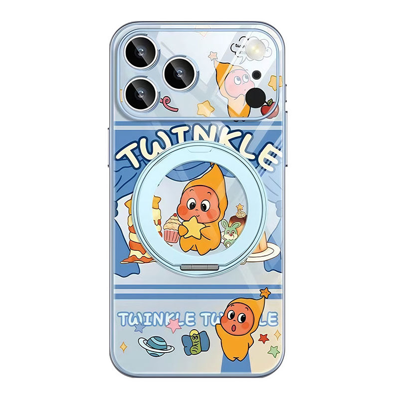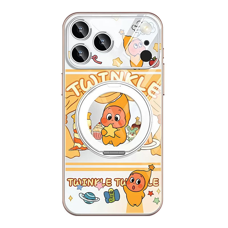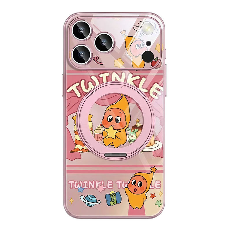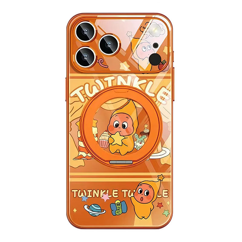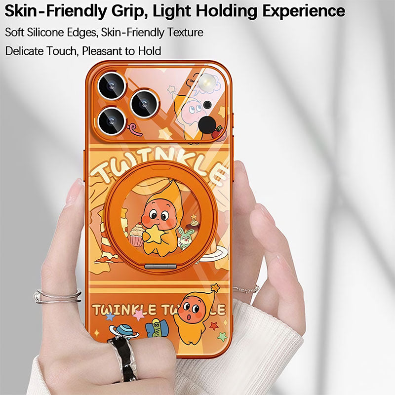 This case supports 360° free rotation. It functions as a stand when pulled open and a magnetic case when closed. It features metal-painted soft edges, a comfortable grip, and lens protection, integrating utility and defense.