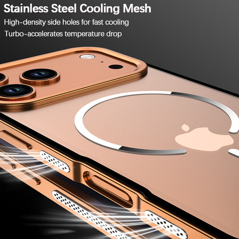 Offers full protection. Features aviation aluminum frames, raised metal lens guard, semi-transparent matte back panel, metal heat-dissipation grilles, and elastic locking slides for hassle-free installation and removal.