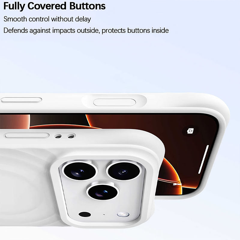 Pressing the buttons on this phone case feels comfortable, and it has good drop protection. The matte material doesnt leave fingerprints or get greasy. Im very satisfied.