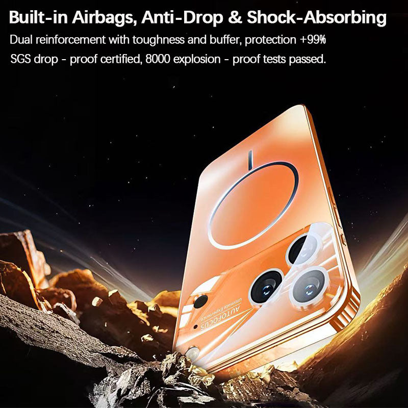 Equipped with an airbag suspension frame, lab-certified for drop protection. Mini air cushions inside four corners accurately absorb diagonal impacts. Large-view magnetic glass case, upgraded hardness, explosion-proof and scratch-resistant.
